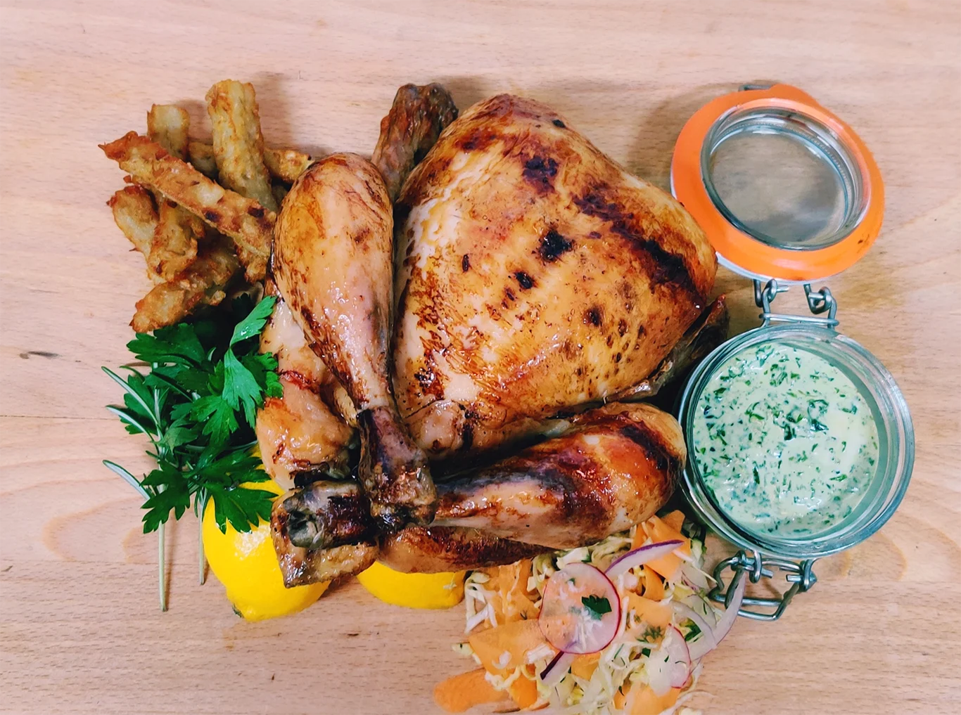 Good chicken takes time, so we need a bit of notice. Give us at least 3 hours and we’ll have your bird cooked and ready when you arrive.